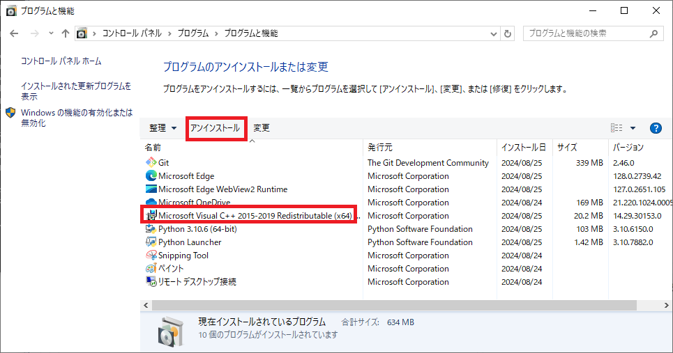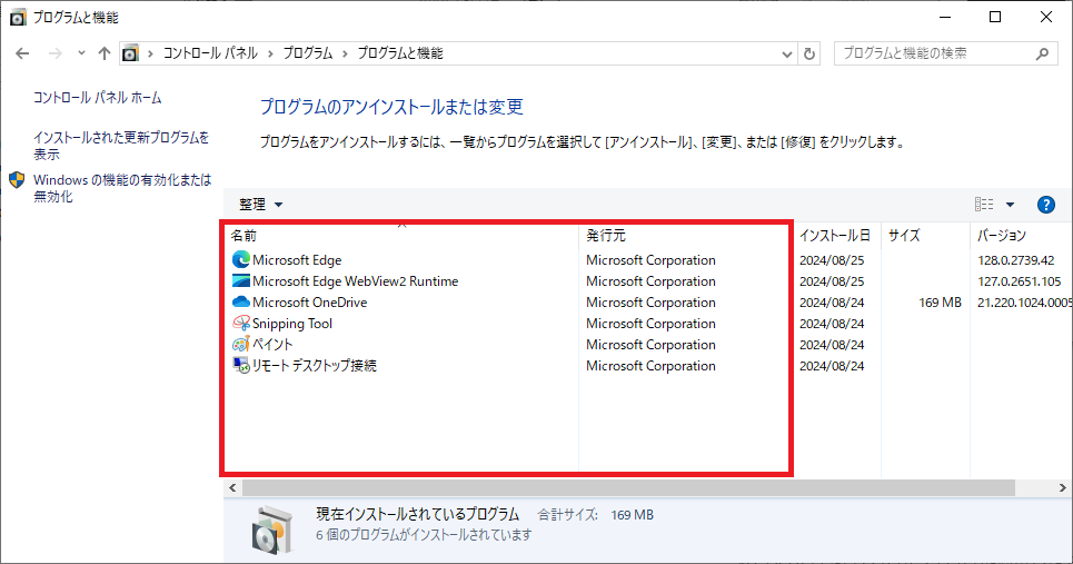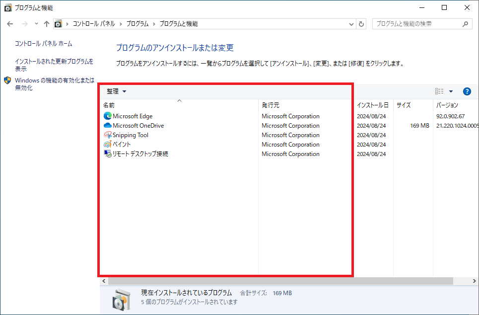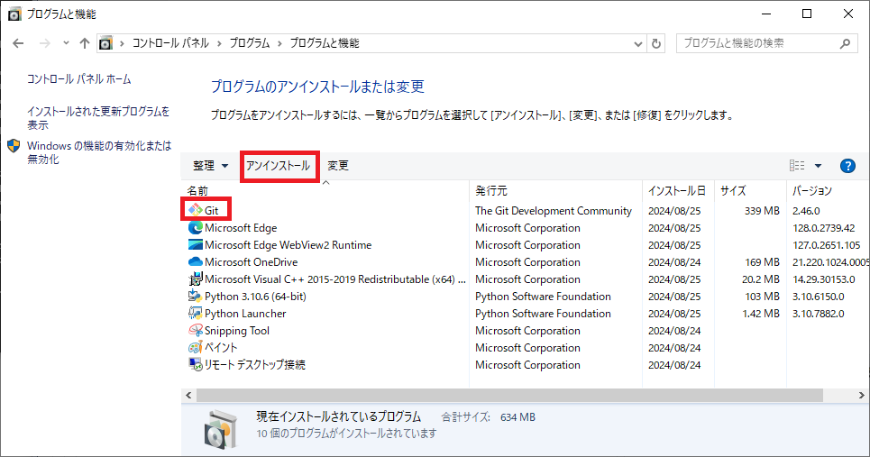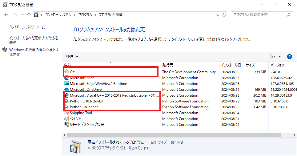 Stable Difussionインストール前のインストール済プログラムを確認しておきます。