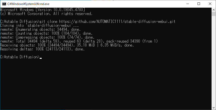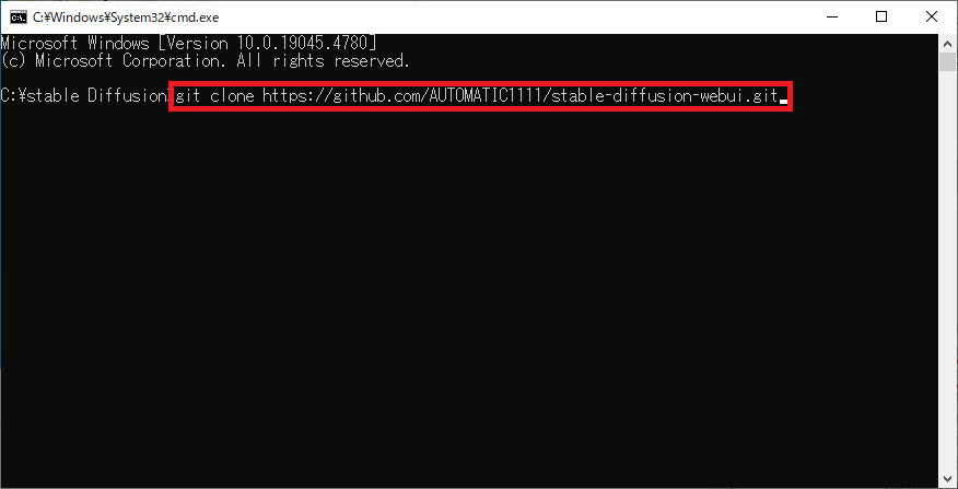 gitコマンドでAUTOMATIC1111/stabule-diffusion-webuiのクローンを作成します。