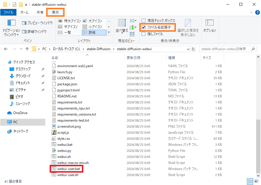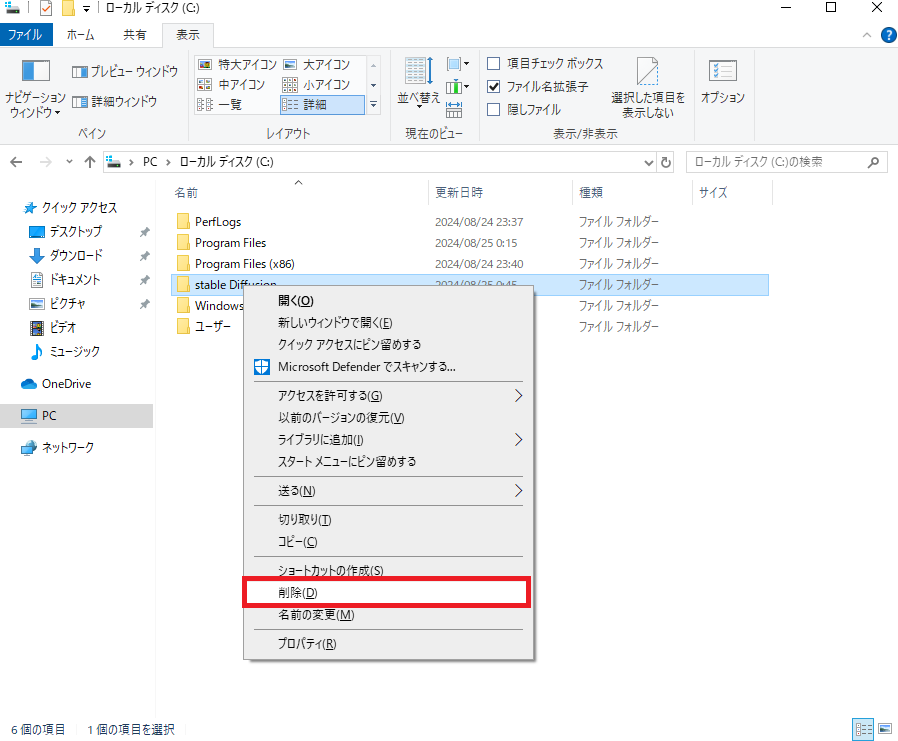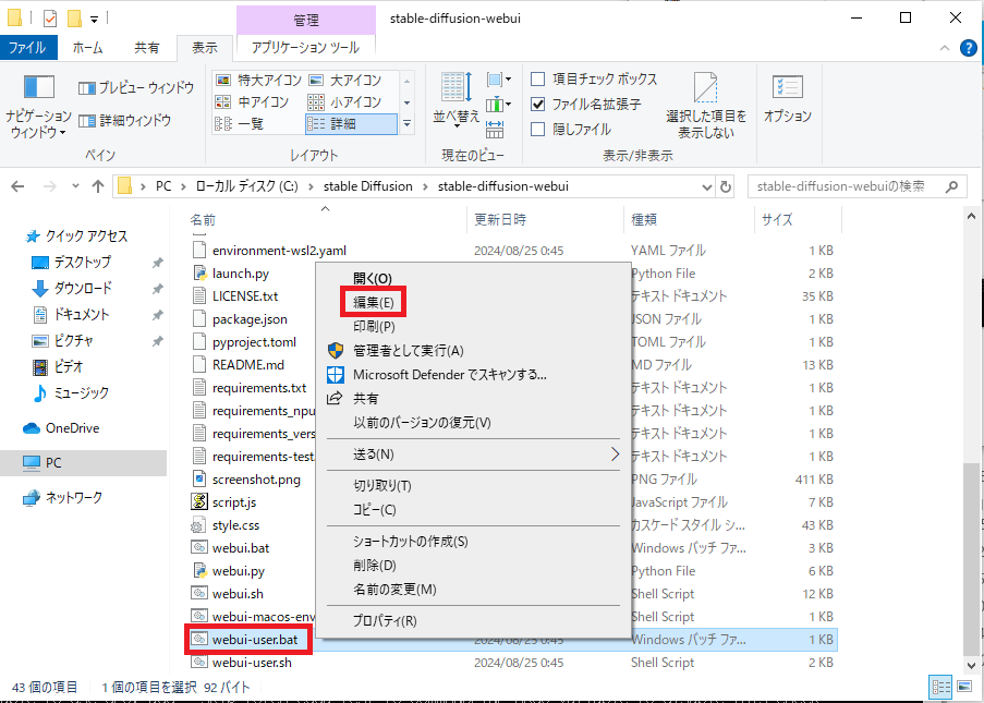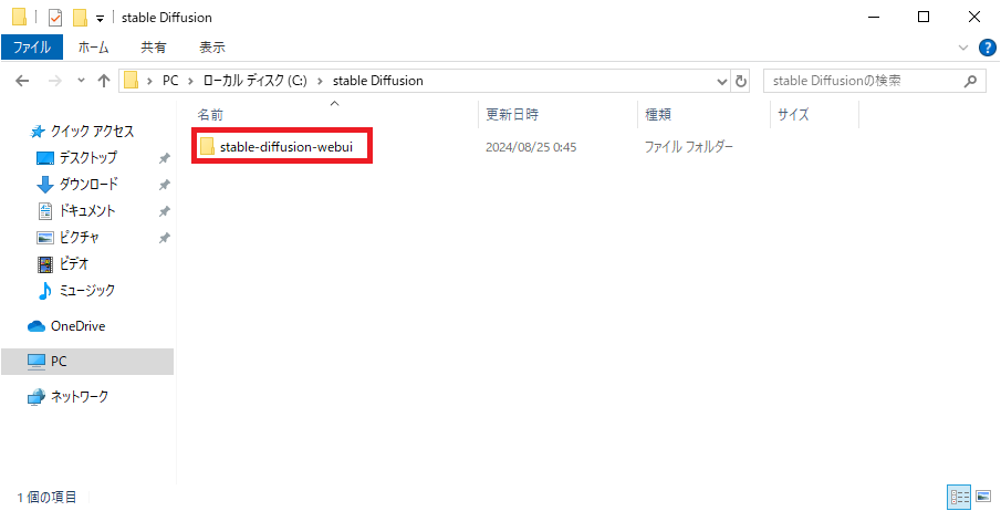 適当なフォルダにStable Difussion(AUTOMATIC1111)のクローンを展開します。