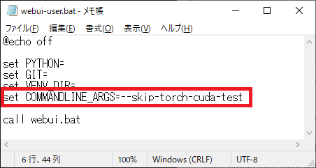 set COMMANDLINE_ARGS=–skip-torch-cuda-test