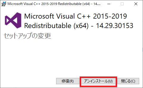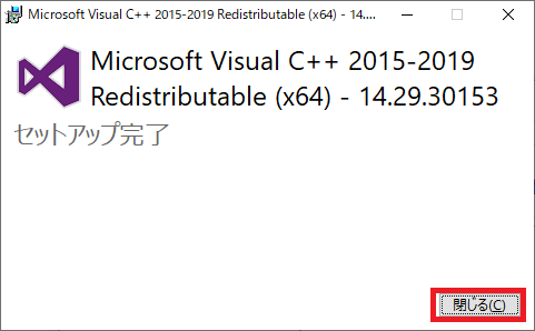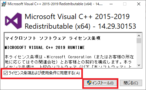 記事にあったVisual C++のインストーラをダウンロードして実行します。