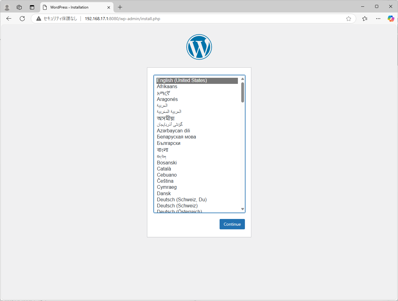 AlmalinuxのIPアドレスポート8080でに接続すると初期設定画面が開きます。